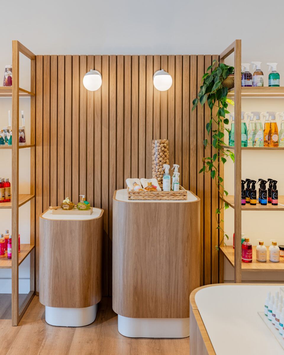 Com base nos princípios da neuroarquitetura, criamos um ambiente clean, aconchegante e flexível, onde a disposição estratégica dos móveis e a simplicidade do layout tornam a loja fácil de montar e expandir no modelo de franquia.
